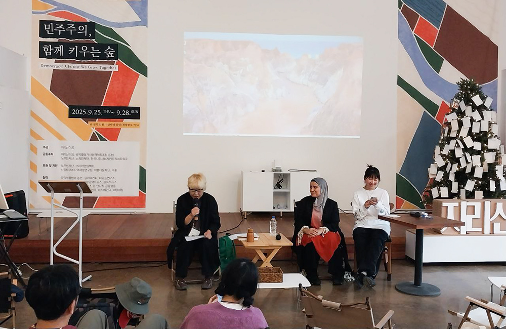 날이 좋던 9월 끝자락, 여행 가는 마음으로 참석한 <지리산포럼 2025>에서 만난 북 토크 『당신의 퇴근은 언제입니까』는 내게는 여행지에서 받은 생각지도 못한 뜻밖의 선물이었다. 북 토크에서 만난 두 필자와의 대화는 내 머릿속에 글자로만 존재하던 문자들에 목소리를 입혀주었다.