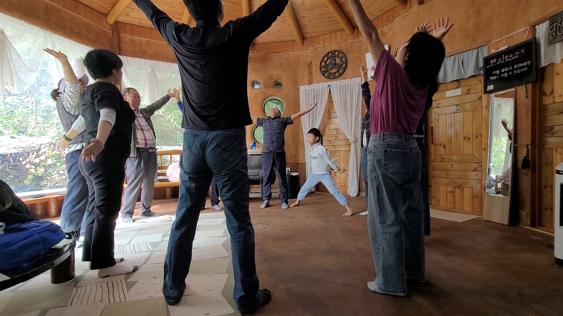 다음 날 오전에는 심신을 위한 치유 몸짓이 진행되었습니다. 최보결 무용가님의 '털기춤'과 '평화의 춤'을 함께 추었습니다. 몸과 마음의 먼지를 털어내고 비워내는 털기춤, 땅과 자신과 하늘을 느끼며 평화를 이루는 평화의 춤을 둥글게 둘러서서 함께했습니다. 처음에는 어색했지만, 털어내고 채우는 과정을 모두 마친 후에는 모두가 묘한 개운함과 편안함을 느낄 수 있었습니다.