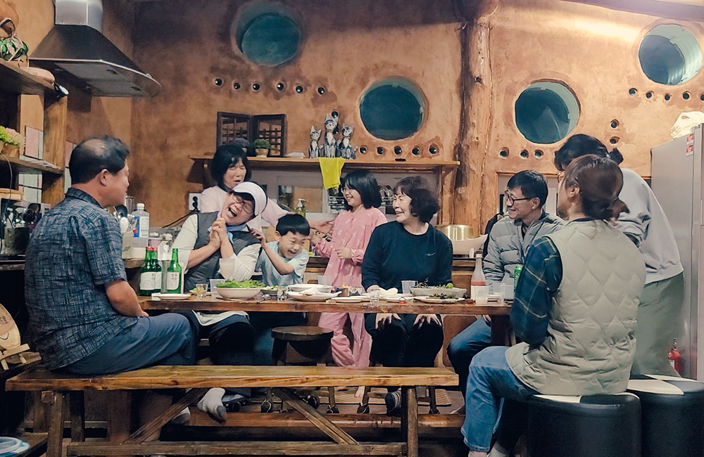 저녁 식사는 소고기 바비큐였습니다. 장보기를 맡은 임수욱 운영위원이 소고기만 고집해 준비해 온 덕분에, 평소 먹기 힘든 소고기를 바비큐로 즐기며 입에서 살살 녹는 기쁨을 누렸습니다. 어린이들도 맛있게 한 접시씩 뚝딱 비워냈습니다. 배를 채운 후에는 실내에서 369 게임과 노래방 배틀을 하며, 90대 어르신들을 돌보느라 바빠 일상에서는 쉽게 해보지 못했던 오락을 마음껏 즐겼습니다.