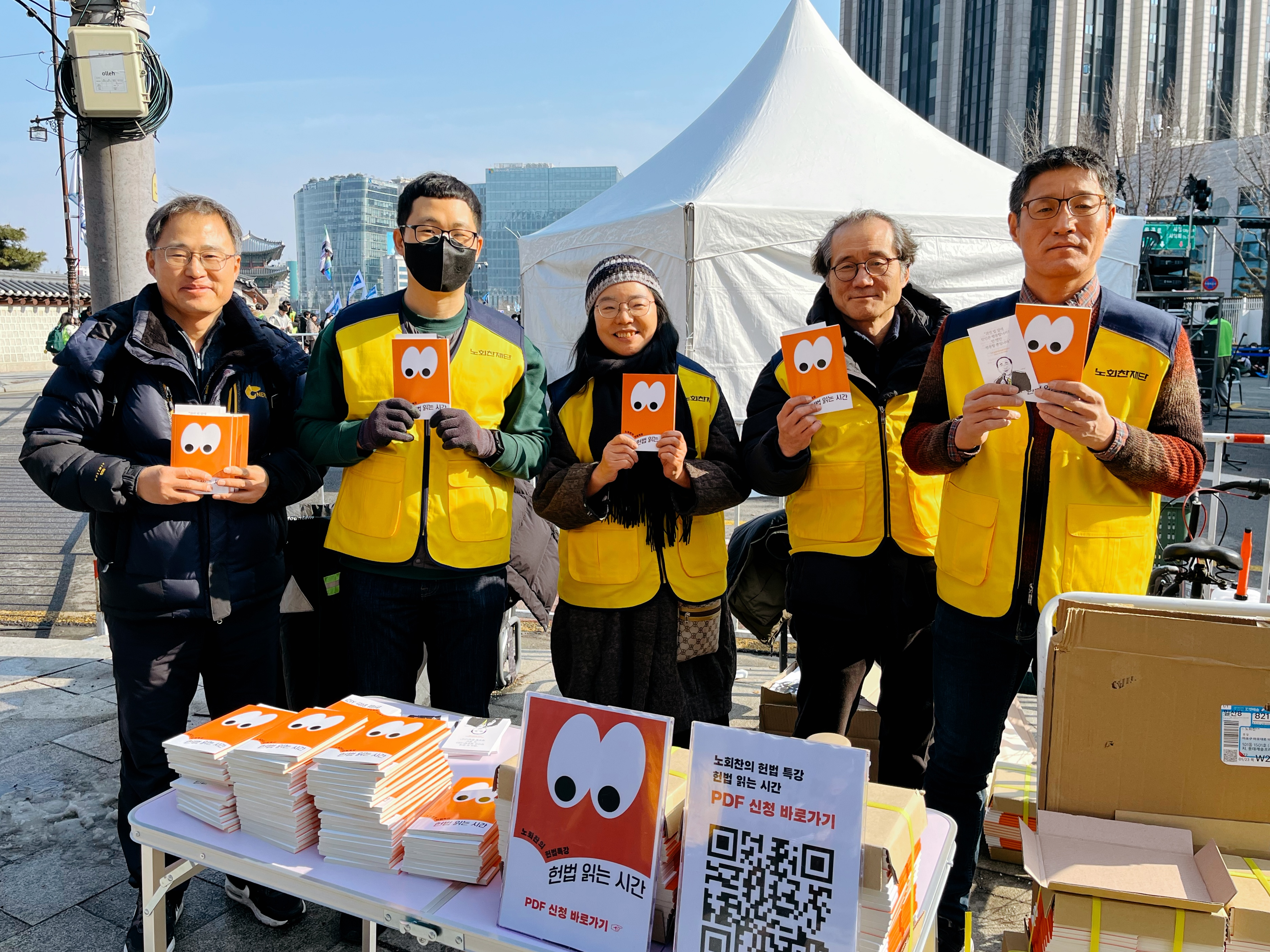 2025년은 유독 훌쩍 지나간 것 같습니다. 민주주의와 일상을 지켜내기위해 거리에서 지낸 시간이 많아서 그런가 봅니다. 우리 노회찬 재단도 올해는 어느 때보다도 시민들과 마주한 시간이 많았던 한해였습니다. 광장의 수많은 깃발 가운데 재단의 노란 깃발이 흩날렸고, 헌법을 알리는 <노회찬의 헌법특강 헌법읽는 시간>책자를 건넸고, 여성의 날에는 장미와 타투스티커를 나누며 응원봉을 든 시민들께 연대의 마음을 전했습니다. 현장에서 시민들을 만났던 순간은 재단에도 새로운 활력이 되었던 것 같습니다.