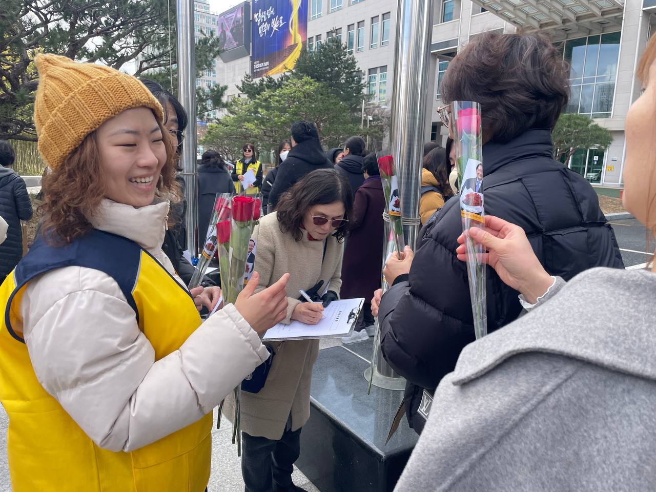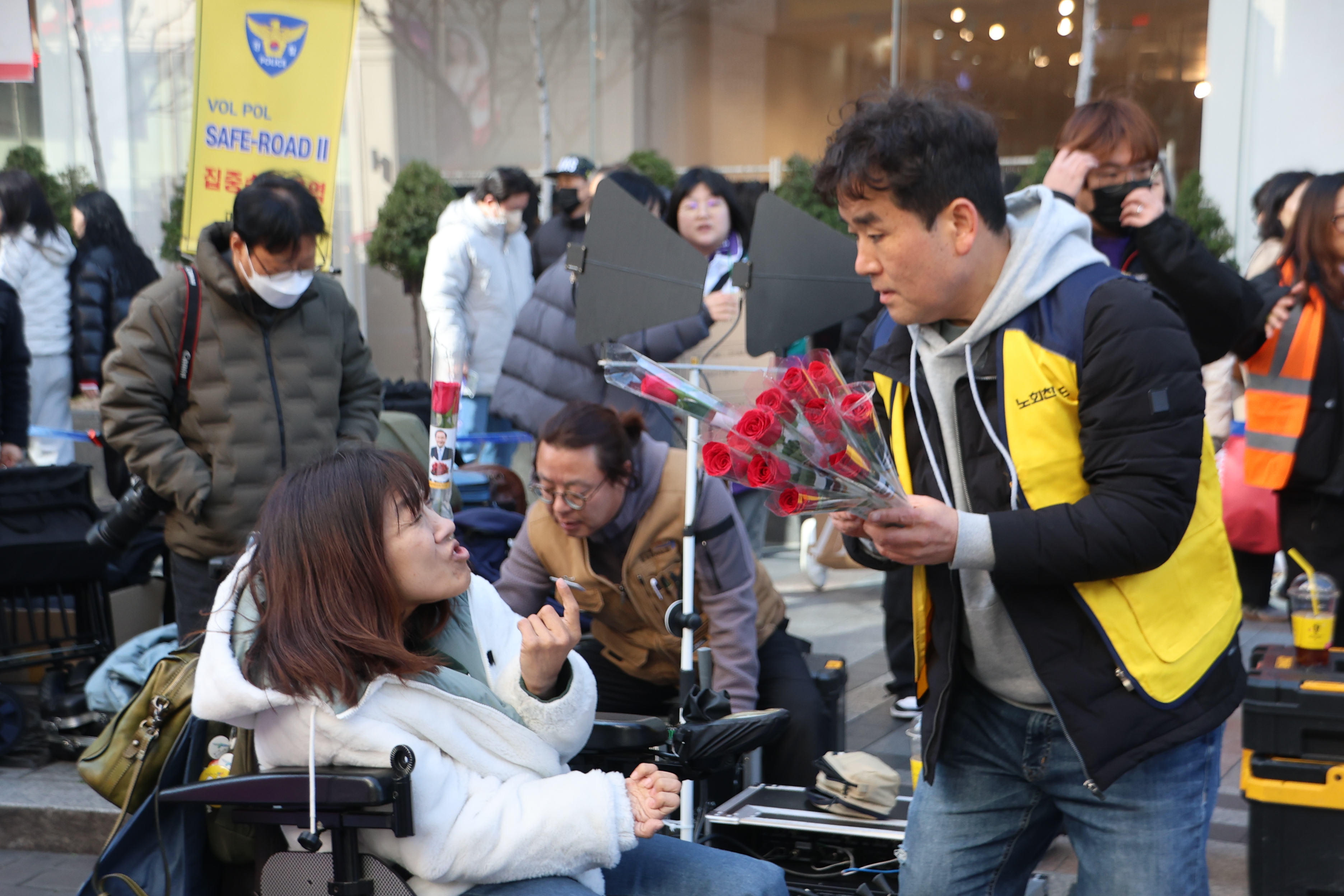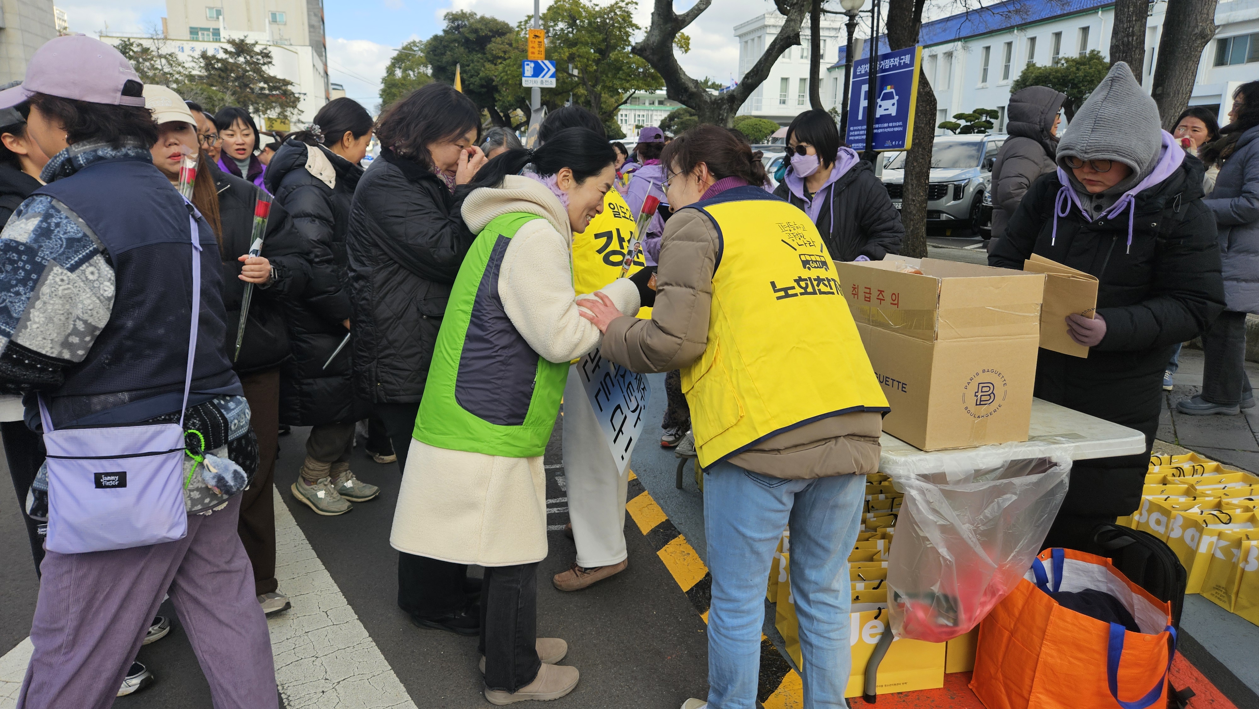 6411번 버스에서 고단한 하루를 시작하는 투명노동자들의 손을 장미꽃으로 맞이했습니다.