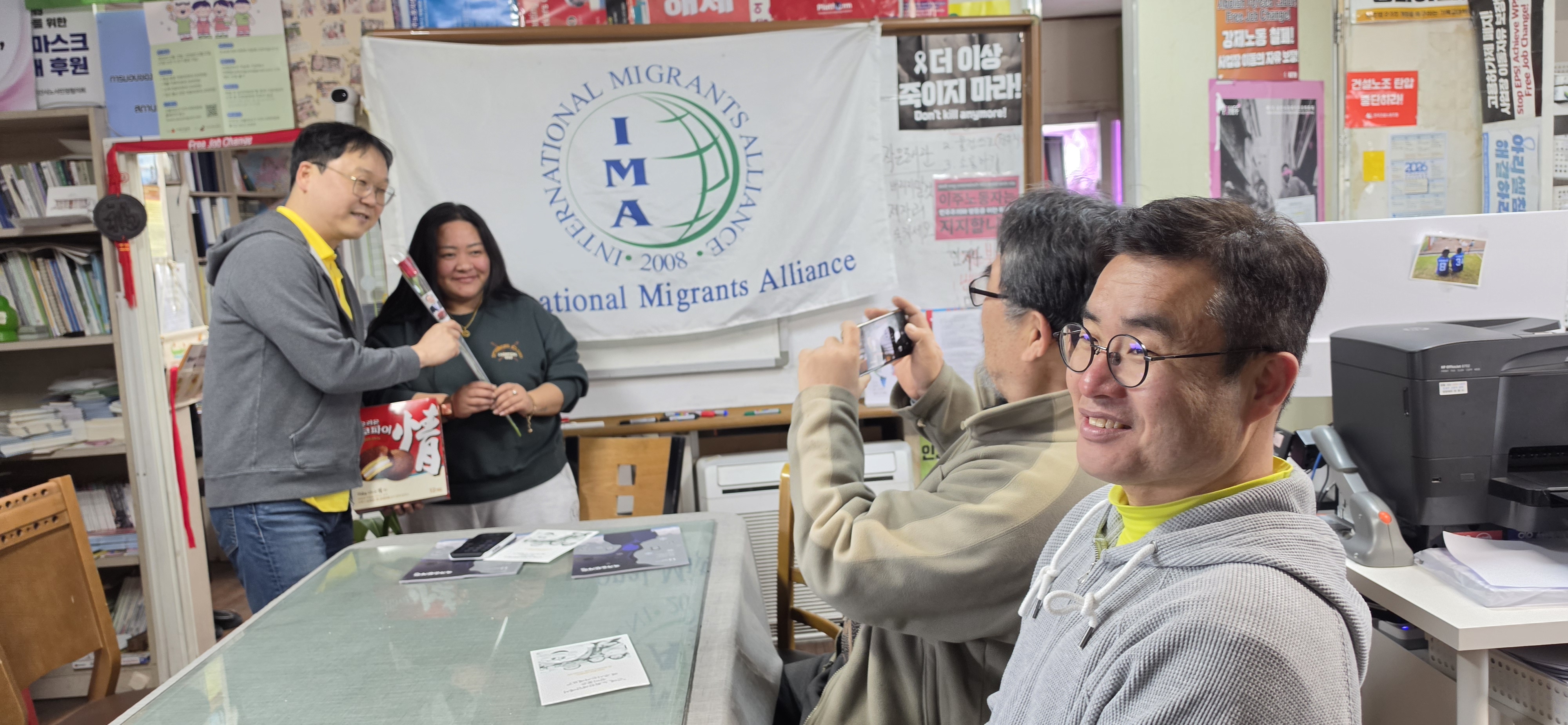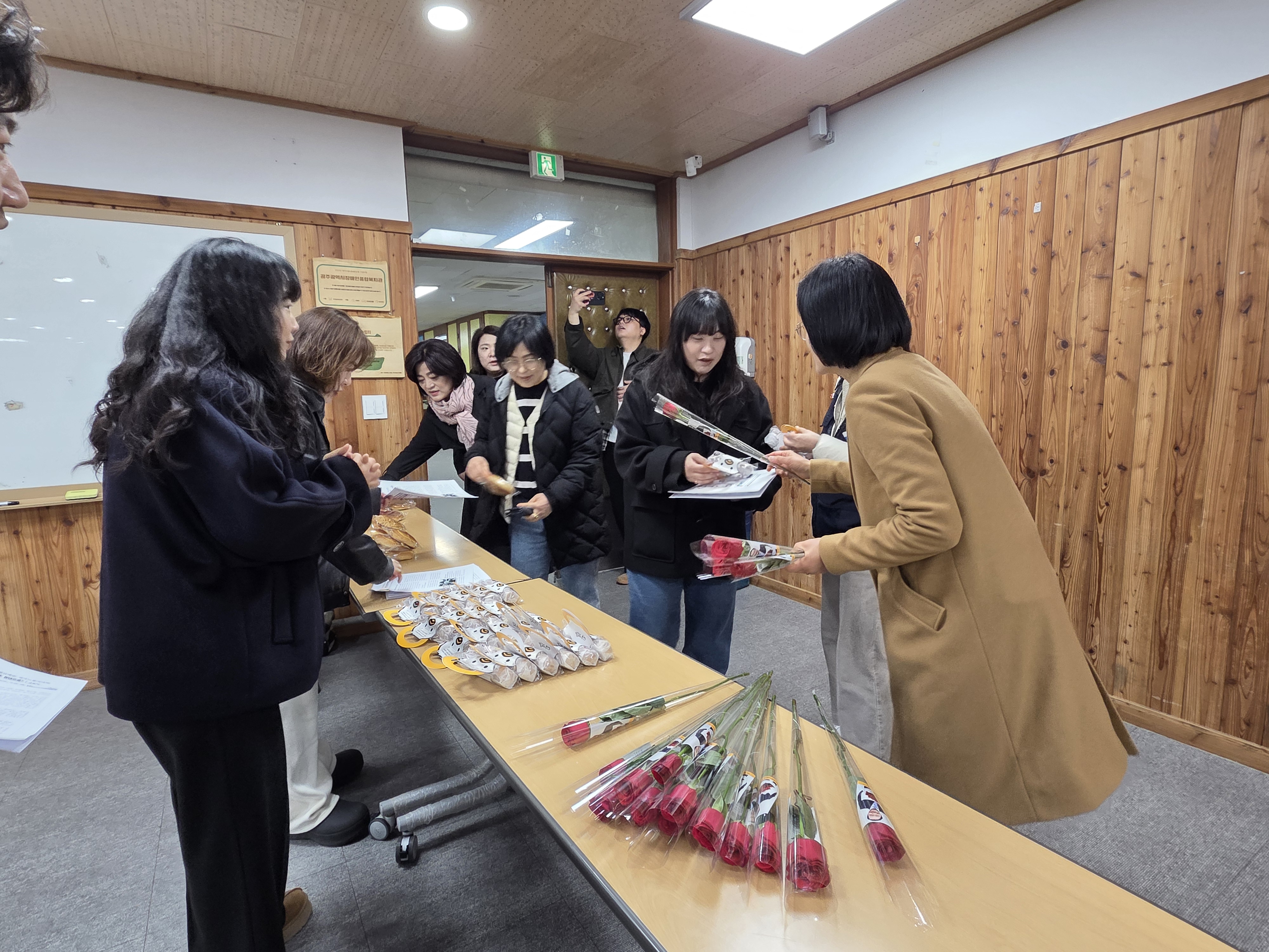 노회찬재단‧여성의전화‧이주노조‧전태일재단‧타투유니온은 <노회찬의집 6411>이 들어선 창신동 봉제 골목의 재봉틀 소리부터 이주 여성들의 땀방울까지, 노회찬장미와 전태일 풀빵으로 차별의 벽을 넘어 ‘동료 시민을 향한 사랑을 전했습니다. 그리고 이주노조와 함께 3.8 세계여성의날 기념하여 다국어 메시지 카드를 만들어 여성이주민들게 전달하였습니다.