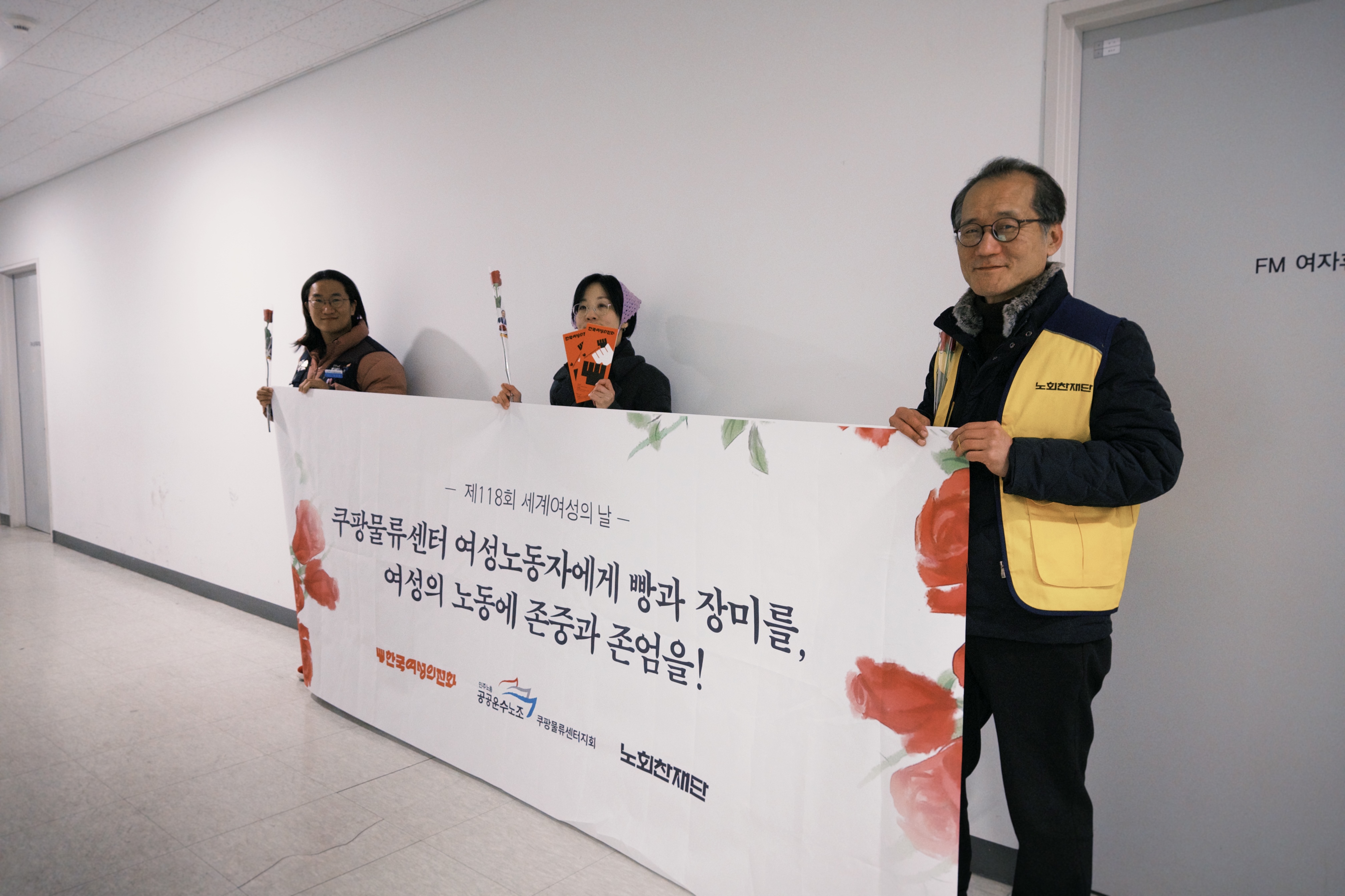 노회찬재단‧여성의전화‧쿠팡물류센터지회는 화려한 디지털 세상과 거대한 물류 시스템을 지탱하면서도 가려져 있던 물류 여성 노동자들에게 ‘보이지 않는 곳의 수고’에 응원을 보냈습니다.