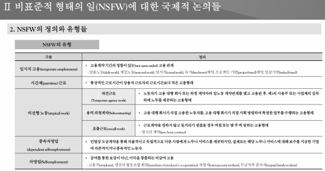 ▲이승윤, 제12회 함께맞는비 포럼 발표자료 중 '비표준적 형태의 일에 대한 국제적 논의들' ⓒ이승윤